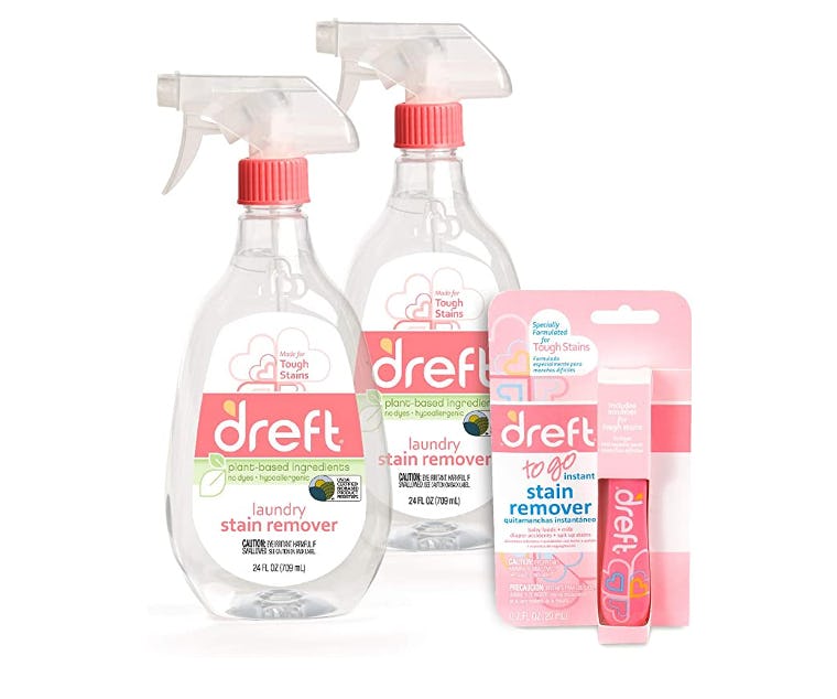Made with plant-based ingredients, Deft's stain remover spray and pen set is still tough enough to tackle notoriously difficult stains like food, baby formula, and spit-up. It works on children's clothing, linens, and bedding — and it’s hypoallergenic, dye-free, and all natural to boot.