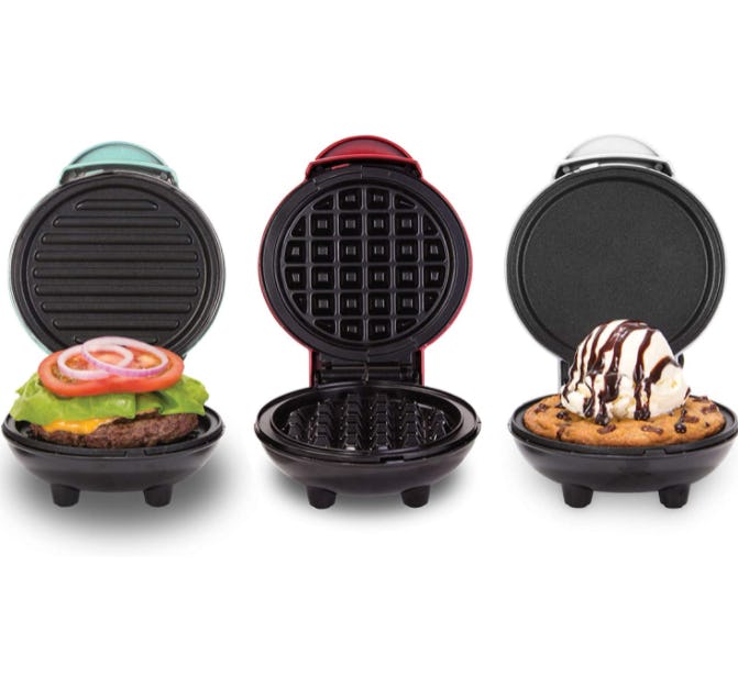This mini waffle maker cooks up a lot more than just waffles: paninis, hash browns, biscuit pizzas, you name it. The dual nonstick surface heats up quickly and evenly for consistent results every time, and this waffle maker is quite compact, making it great for small apartments, dorms, or any place with limited counter space.