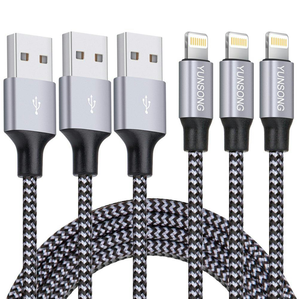 With three 6-foot cords in the pack, these nylon braided cables make it easy to keep all your devices charged and ready to go. The aluminum alloy head resists damage from bending, and the nylon braiding ensures durability. These cords are available in a gray color, and they are compatible with Apple devices like iPhones and iPads.