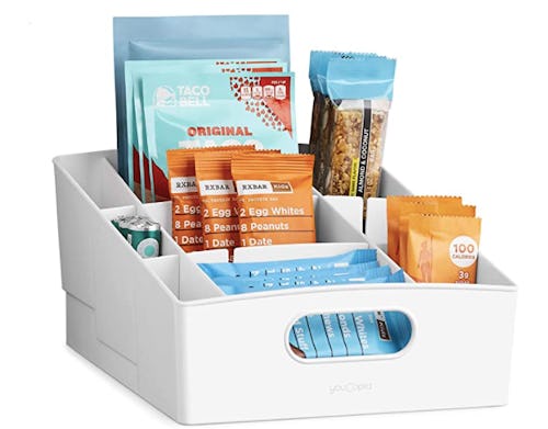 A cabinet stuffed with snacks is a beautiful sight, and this handy organizer keeps all your goodies visible and tidy. Plus, it’s a caddy with a handle so you can tote those tasty bad boys to your desk or couch and feel quite refined. It’s also ideal for bathroom sundries, craft materials, or any clutter that could use a cleanup.