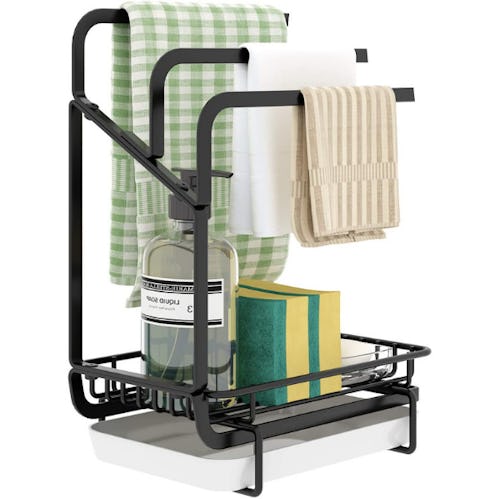 Keeping sponges, towels, and dish gloves dry helps your kitchen be its best self, and this combo sponge-holder/towel rack does just that. Made of stainless steel so it’s rust-proof and durable, this nifty sink-tidier sits above a drain pan for easy cleanup. It’s compact enough to sit easily atop counters or windowsills.
