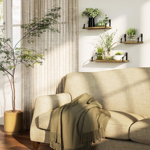 Simply crafted from Paulownia hardwood and metal brackets, these floating shelves are an utter steal at $20 a set. There’s a small, medium, and large, with the longest running 17 inches with a weight capacity of 40 pounds. All installation hardware is included, so you can quickly start employing that wall space with style.