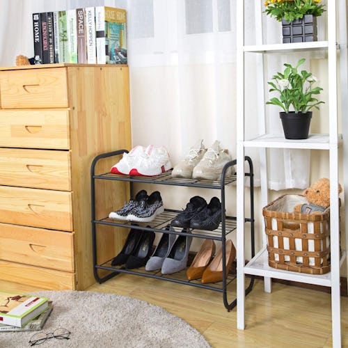 “Really easy to assemble and very sturdy. I'm impressed on the value for the price,” one customer raved about this metal shoe rack. Available in a three-tier or four-tier design, they hold about 12 pairs each and feature an elevated rounded rod design.
