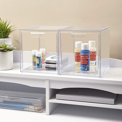 Whether you use it for first aid, toiletries, spices, or something else, they’ll be easy to find in a glance thanks to these clear organizers. Save even more space by stacking them.