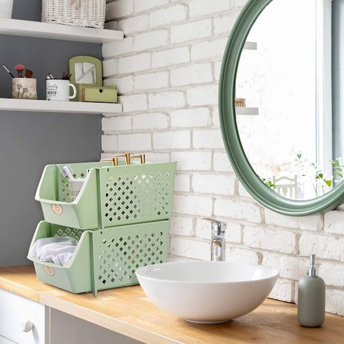 Bathroom, kitchen, garage — these space-saving storage bins add a heaping dose of tidy wherever they land. They’re made of sturdy plastic with mesh-like sides and a dropped front so you can easily peep what’s inside. Available in a variety of pleasant pastels and neutrals, all elicit a sigh of organization-based contentment.