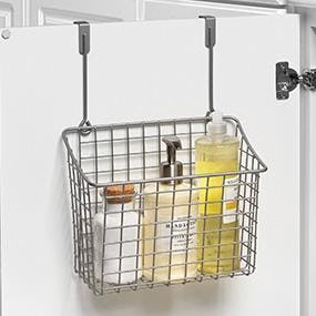 Lurking inside cabinets is often a haphazard mishmash of products and supplies — but it need not be this way! Spectrum’s Storage Basket instantly slips over cabinet doors to up capacity in a practical, handsome package. It’s a grid basket so you can easily spy what’s inside, and is made of steel so can handle the heavies.