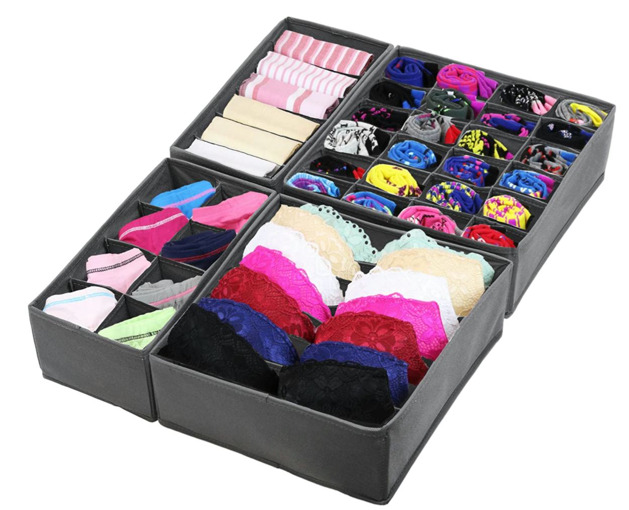 Need help organizing your sock drawer? These drawer dividers make it easy to keep socks, ties, underwear, and more items neat and tidy. The set includes four dividers made from durable non-woven fabric, and you can choose from seven colors, including dark gray, black, and beige.