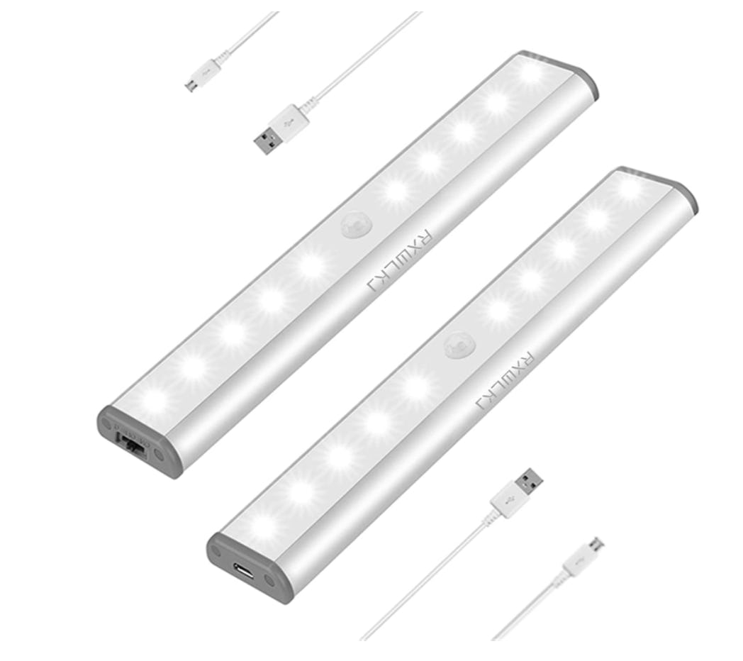 These under-cabinet LED lights are easy to stick in the kitchen, a closet, inside a drawer, or anywhere you need illumination — just use the included adhesive tape or the built-in magnet for quick installation. The USB-rechargeable lights offer three settings: motion-activated, always-on, and off.