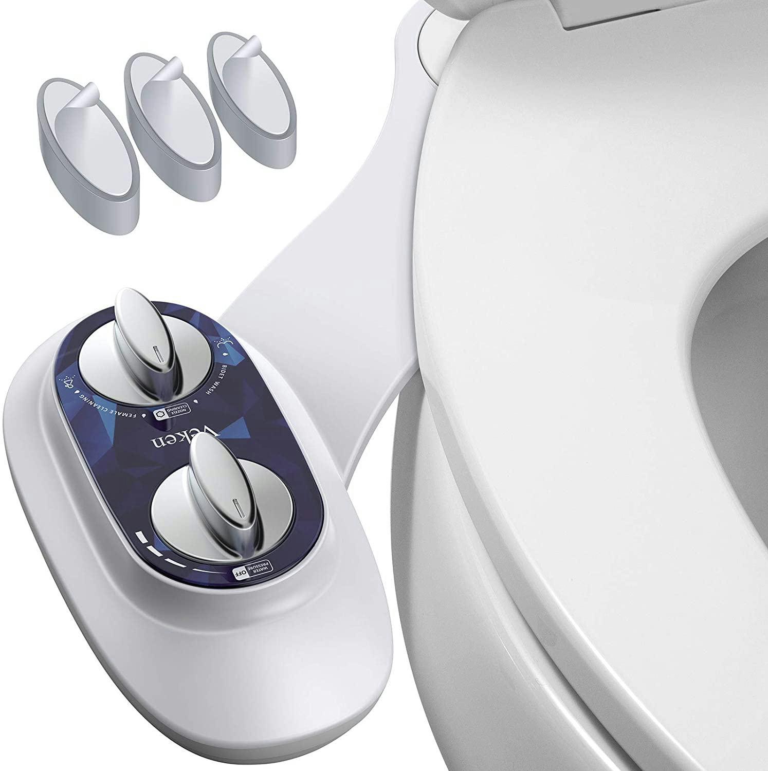 Give your bathroom an affordable upgrade with this bidet toilet attachment. The cold water bidet comes with everything you need for easy installation and features a self-cleaning dual-nozzle design with control knobs to adjust the water pressure and cleaning mode. The control panel comes in three colors: navy, lavender, and dark gray.