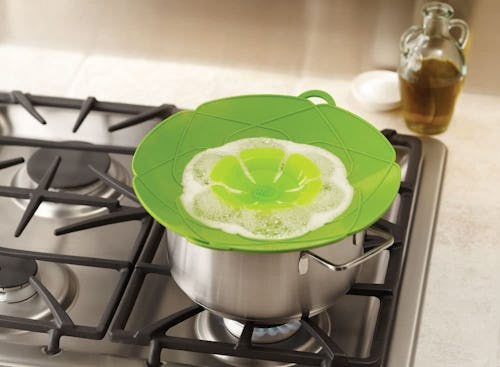 Put an end to messy stovetop spills and boil overs with this heavy-duty spill stopper. Heat resistant up to 400 degrees, just toss this lid over your rice, pasta, and other starchy foods while they cook. The bloom shape on the top prevents boil overs, and this also doubles as a steamer and microwave lid. Plus, when you're done, the lid is dishwasher safe.