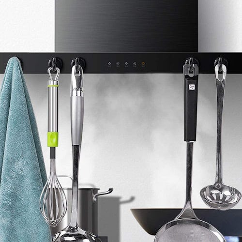Equipped with six strong hooks each, these hanging hook racks are ideal for organizing closets, vanities, and kitchen cupboards. Each of the three-pack can hold up to 6.6 pounds, and there’s no installation required, simply slide it onto existing shelving. Use it for everything from cooking utensils to jewelry. Choose between black or white.