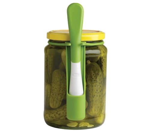 Great for use with pickles, olives, or peppers, this brilliant condiment fork makes it easy to grab a quick snack without dirtying another utensil or using your fingers. The fork features three metal prongs that make it so much easier to pull food out and comes with a holder that features a stretchy band to fit most jars and containers.