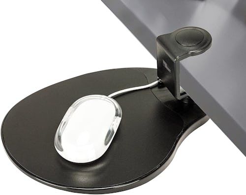 This clamp-on mouse platform is a great choice for anyone who needs to expand their usable work space. It can be secured to the edge of a table or desk in seconds, without any tools. Plus, when it’s not in use, you can simply rotate the mouse pad underneath the table.