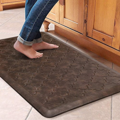 Made with a dense gel foam, this standing mat is designed for optimal comfort, offering cushioned support that helps improve posture and pressure off your feet and joints. The waterproof, stain-resistant mat has a non-slip bottom and is easy to clean.