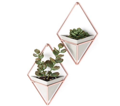 These diamond-shaped hanging planters can be mounted to the wall and are an instant way to upgrade any room. Made from resin and copper-plated metal, they're great for small succulents and air plants, and come with all the hardware necessary for mounting.