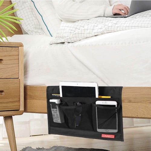 Keep your phone, tablet, and remotes nearby with this bedside caddy. The Oxford cloth and leather organizer is designed with four pockets and an inserting board you can place underneath your mattress to keep it secure. You can also use the caddy on your sofa or arm chair.