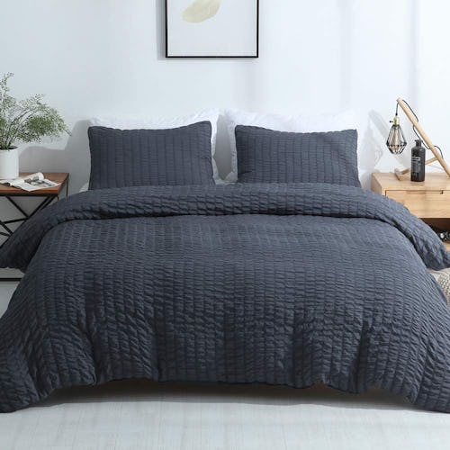 While you're at it, update your comforter with this seersucker duvet made from washed microfiber. In muted colors like dark gray and olive green, the machine-washable duvet is outfitted with corner ties to keep your comforter in place, and it comes with two matching pillowcases. One reviewer wrote, "It’s super soft and cozy. Doesn’t get too hot doesn’t get too cold. It’s perfect."