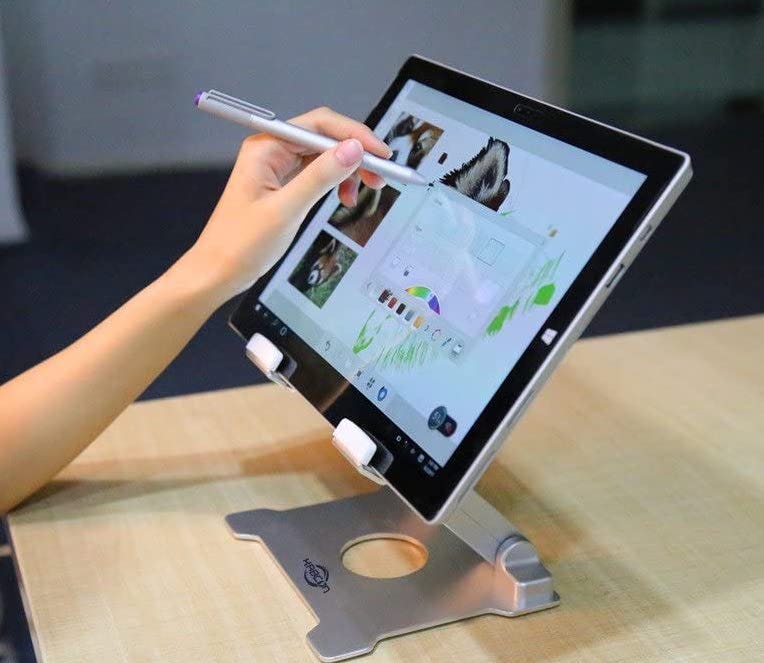 If you're looking for a hands-free way to use your tablet, this aluminum tablet stand boasts a 4.8-star rating with over 4,000 Amazon reviews. The lightweight stand offers adjustable height and angles for comfortable viewing, and when not in use, it folds down to a compact size for easy portability. Choose from silver and space gray.
