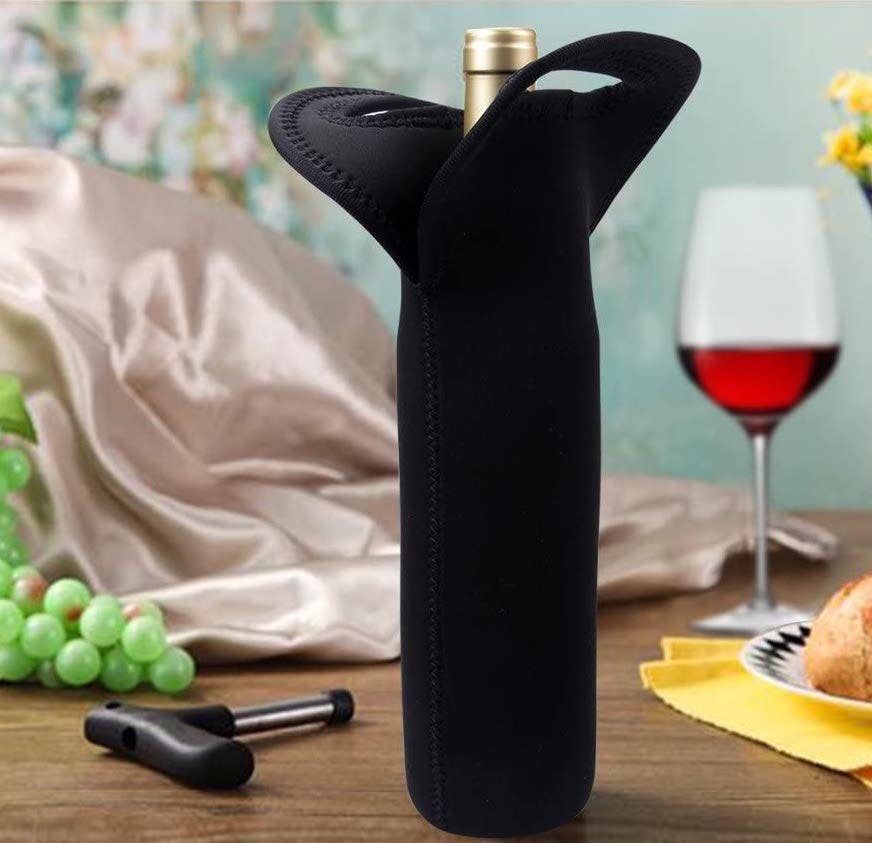 Keep wine chilled and (and the bottle protected) with this wine bottle cooler bag. Perfect for dinner parties and picnics, the tote is made from stretchy, insulated neoprene that has just a bit of cushion, and the soft-grip handle makes for convenient carrying.