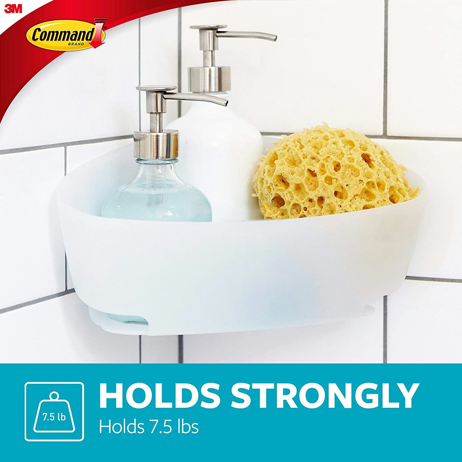 Organize your bath products in no time with this easy-to-install corner shower caddy that holds up to 7.5 pounds. The mounting base sticks to the shower wall with the included water-resistant strips, and the clear frosted caddy can be removed from the mounting base for easy cleaning.