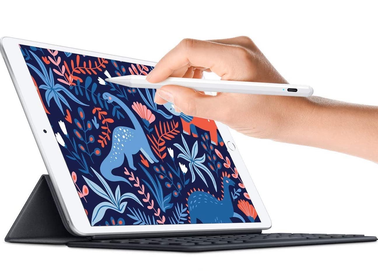 Use this iPad stylus pen to write and draw on your tablet with precise, smooth lines. The rechargeable stylus is made from durable aluminum with a 1.5-millimeter pen tip, and it turns on and off at the touch of a button with no Bluetooth required. Best of all, it has palm rejection, so you can rest your hand on the tablet while writing, without making unwanted marks.