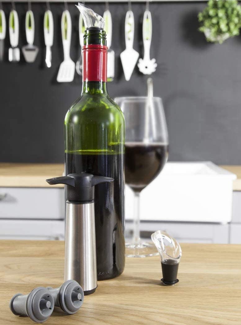 Keep your vino fresh and flavorful until the last sip with this reviewer-approved Vacu Vin wine saver. The stainless steel wine saver comes with a pump that removes oxygen from the bottle, along with two tight-sealing stoppers to create a tight seal that slows down the oxidation process. Two aerator spouts are included to bring out the flavor and aroma of your wine.