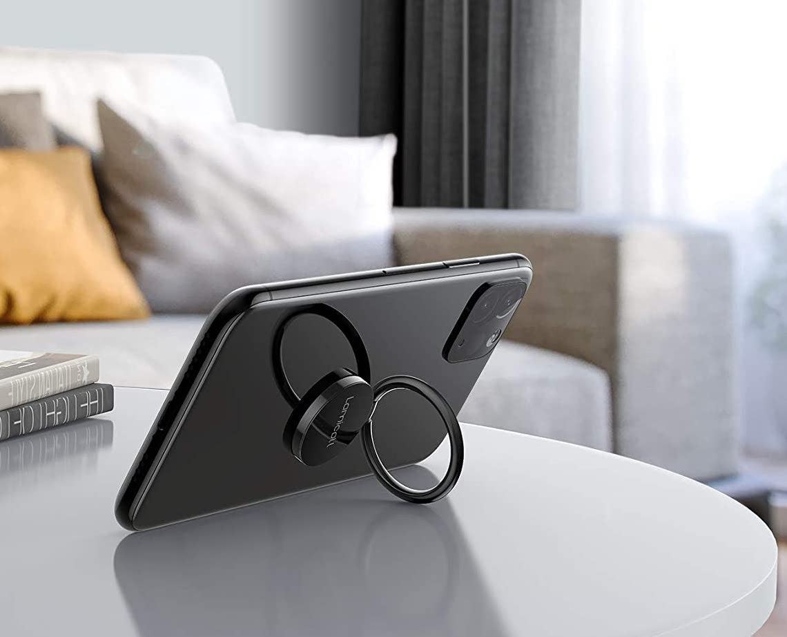This phone ring holder gives you a secure grip on your smartphone, and it also works as a kickstand for hands-free viewing. The durable ring holder is compatible with all smartphones 4 to 8 inches wide, and it rotates and flips, so you can find the most comfortable angle. There are five color options, including black, rose gold, and silver.