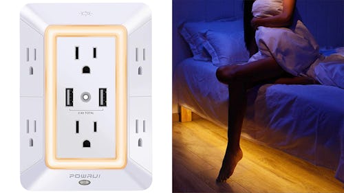 This USB wall charger and outlet extender packs a lot of functionality into its compact size. The charger fits into standard outlets and has six AC outlets with surge protection, two USB ports, and an optional smart night light that automatically turns on after dark. Plus, the night light has a touch sensor that lets you toggle between three brightness levels.