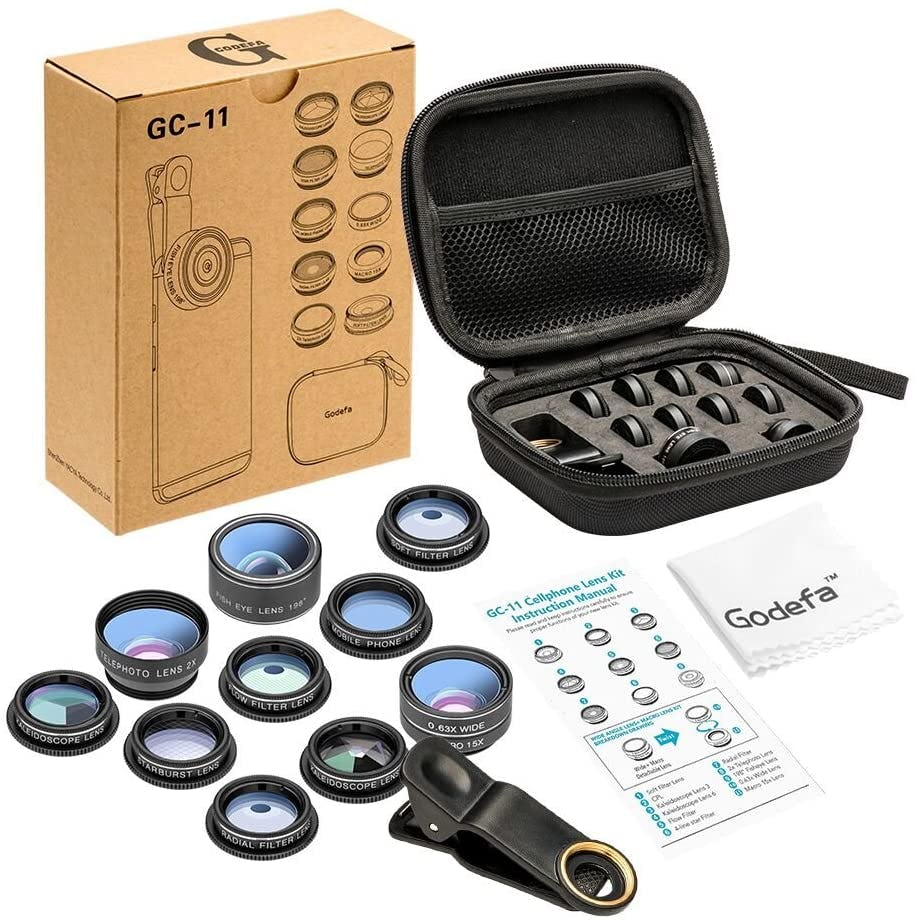 This highly rated phone camera lens kit allows you to capture professional quality photos and videos with your smartphone. The kit includes 11 lenses, including a telephoto, fisheye, super wide angle, and macro lenses, and the universal clip works on both front- and rear-facing phone cameras. A protective carrying case is included.
