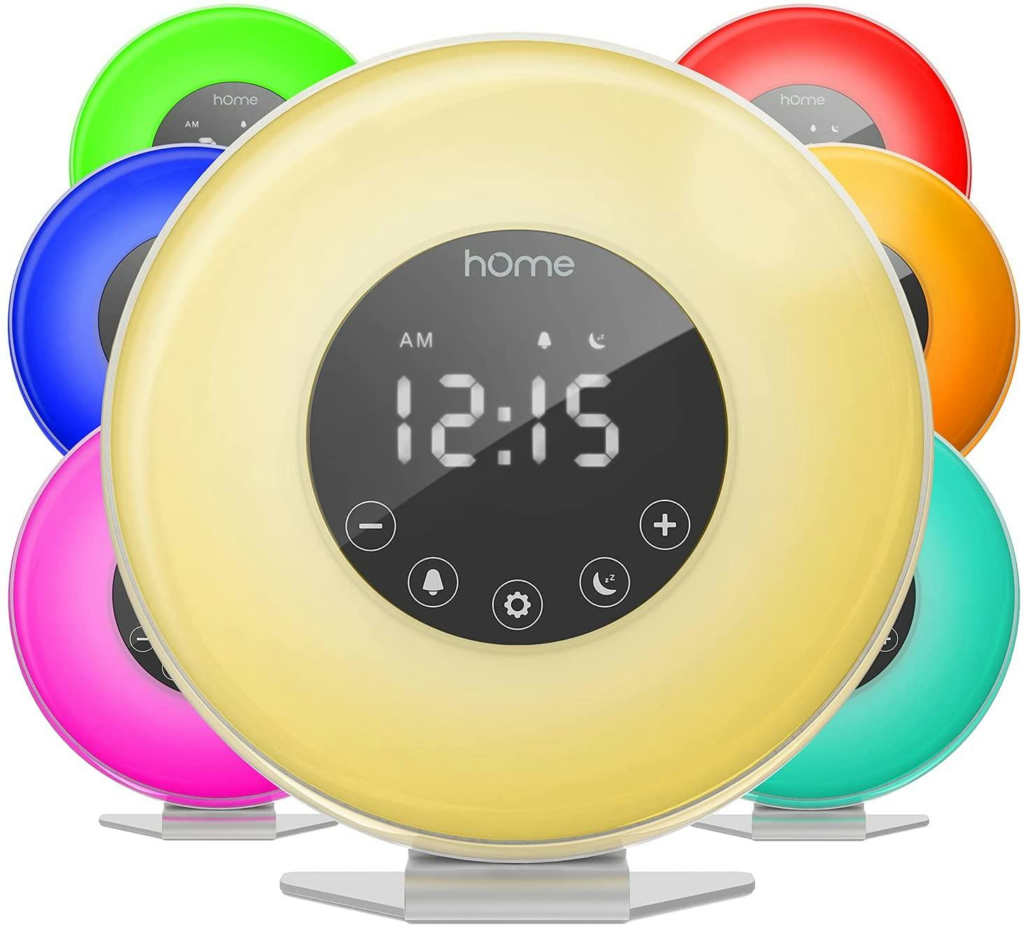 Do you repeatedly smash the snooze button every morning?This wake-up light alarm clock simulates the sunrise with soft, natural light that brightens gradually, which may help you feel less sleepy when it's time to get up. And in the evening, it mimics the sunset to help you prepare for bed. Other features include a snooze function, six night light color options with adjustable brightness levels, an FM radio, and several nature sounds that wake you up gently. .