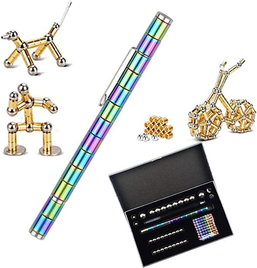 If you often find yourself fidgeting with your pen, you can take it to the next level with this magnetic fidget pen. It features 13 magnetic rings and 12 steel balls, which you can use to create all sorts of shapes. You can choose from five colors, and the pen also comes with stylus tips for use with tablets.