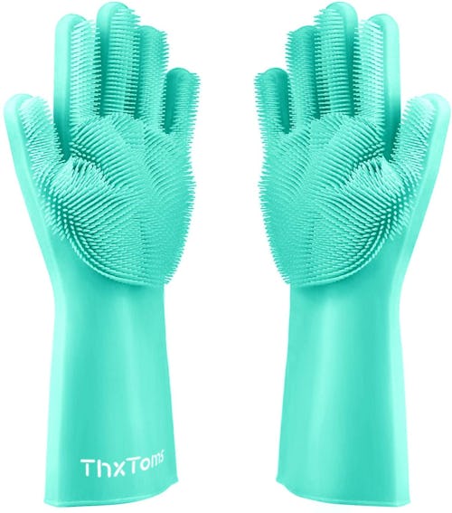 These silicone gloves with built-in scrubbing bristles