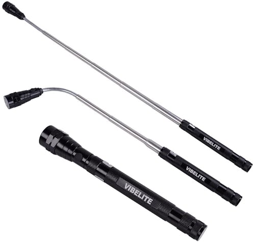 If you drop a nail or screw in the middle of a construction project, this magnetic pickup tool can help you find it in no time. It has three bright LEDs and an extendable, flexible neck with a magnetic head and base, allowing you to lift objects from hard-to-reach places with ease.
