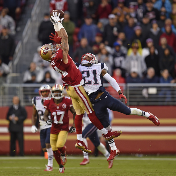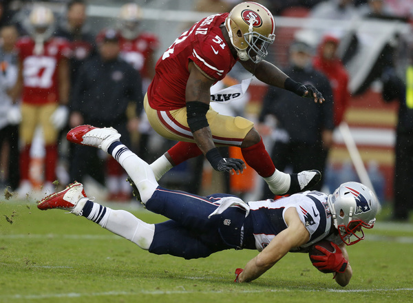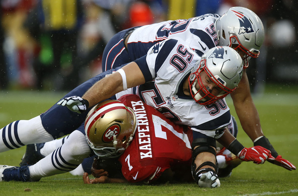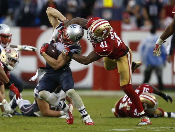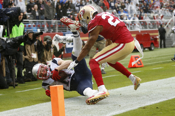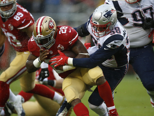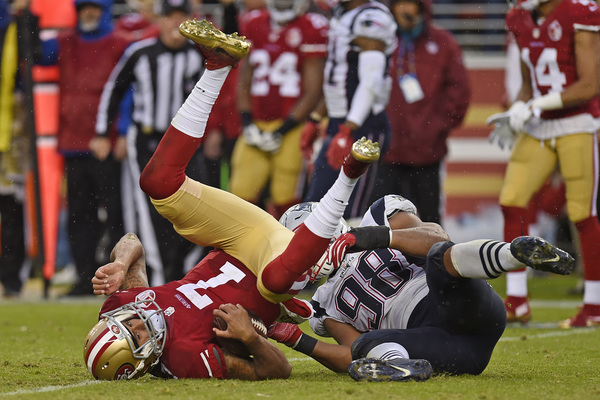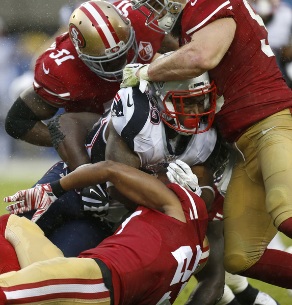 In matching the longest skid in the franchise's 70-year history, the 49ers resumed their weekly vanishing act after halftime. That solidified Sunday's 30-17, rain-soaked defeat to the New England Patriots before a Levi's Stadium crowd filled with delighted fans in Brady's No. 12 replica jersey.