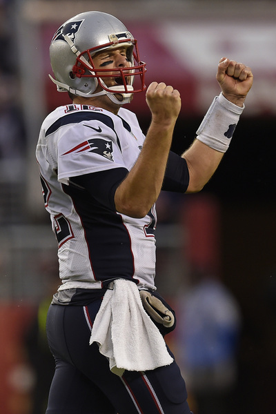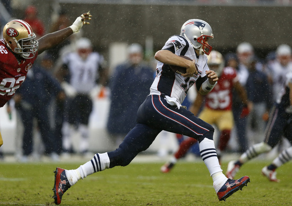 Brady did so amid Levi's Stadium's first rainstorm since it opened in 2014. He did so with star tight end Bruce Gradkowski back home with a chest injury. Brady finished 24 of 40 for 280 yards with the four touchdowns, no interceptions and one sack.