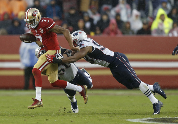 Kaepernick completed only 8 of 21 passes after halftime for 90 yards, and although he threw a second-half touchdown pass for the first time this season, it came with 2:06 remaining.