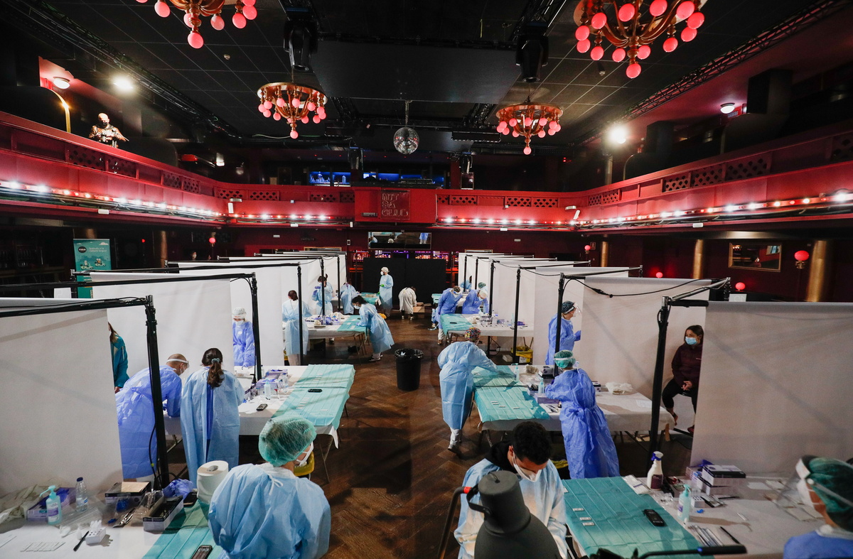 Pre-concert testing at three Barcelona locations was carried out by 80 nurses wearing full personal protective equipment. Some people winced as nurses swabbed their noses.