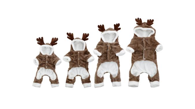 Each reindeer costume is available in four sizes and comes with a closure underneath the pet’s tummies to fasten in place.