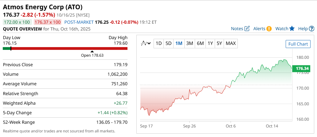 Today, ATO stock currently trades at $176.37, and the company pays a forward annual dividend of $3.48, translating to a yield of approximately 2%. Atmos’s dividend payout ratio is 46.33%, which strikes a good balance, allowing the company to grow its dividend while setting aside sufficient funds for future growth.