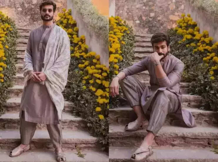 Sunny Kaushal rocked a lavender kurta pyjama set and elevated the style quotient with a sherwani dupatta and sunglasses. This fusion of modern and traditional elements not only makes a bold statement but also shows that you can experiment with different elements to create a unique festive look.