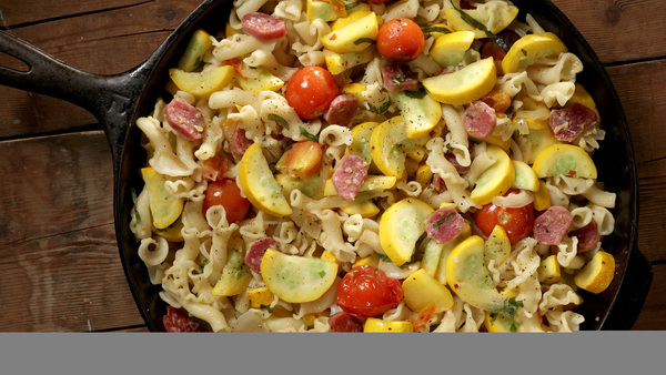 Here's my basic preparation for any of them: Saute \- or [-inch cross-sections or half-moons over high heat in olive oil until tender. Next, add some garlic, salt and as much freshly ground black pepper as your nose can stand. Saute until the garlic is just fragrant, about 30 seconds. This is your base recipe. Now add other farmers market gems: fresh tomatoes, basil, mushrooms, etc.