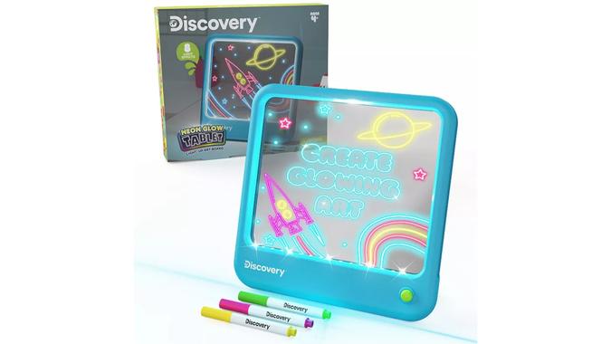 The Discovery Neon Glow light-up tablet allows your aspiring artist to create unique glowing neon artwork. The board includes eight lighting effects, three erasable neon markers and a flip-out kick stand to allow grandkids to display their creativity.