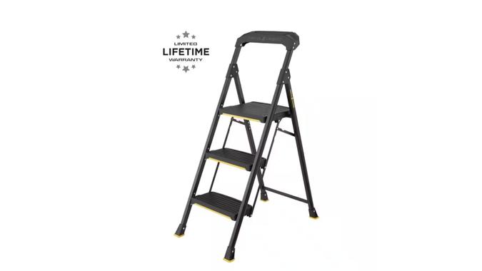 The Gorilla steel step stool puts safety first for retirees decorating for the holidays. This Gorilla step stool has three oversize steps for stability and a project top that can hold tools, hardware and other small items so hands stay free. The nonslip treads on the steps add traction while the large, non-marring feet protect floors.