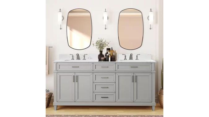 Come in under budget on a bathroom remodel with this Home Decorator’s Collection Double Sink Vanity. Home Depot slashed the price by 40%, saving shoppers $760. The vanity is Sky Grey with an engineered white Carrara marble top — the perfect neutral color scheme for most bathrooms.