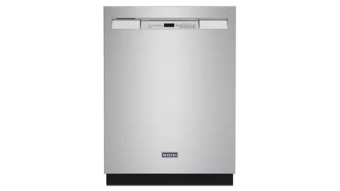 Save 32% off the regular price by upgrading to the 24-inch Maytag Stainless-Front Dishwasher. It features a stainless steel tub built to withstand high-heat wash cycles for years to come. It also includes an extra-large upper rack with increased height to handle large pots and pans. Loading dishes can be a breeze; there’s no need for pre-rinsing. The appliance’s Dual Power Filtration filters out food particles and disposes of them.