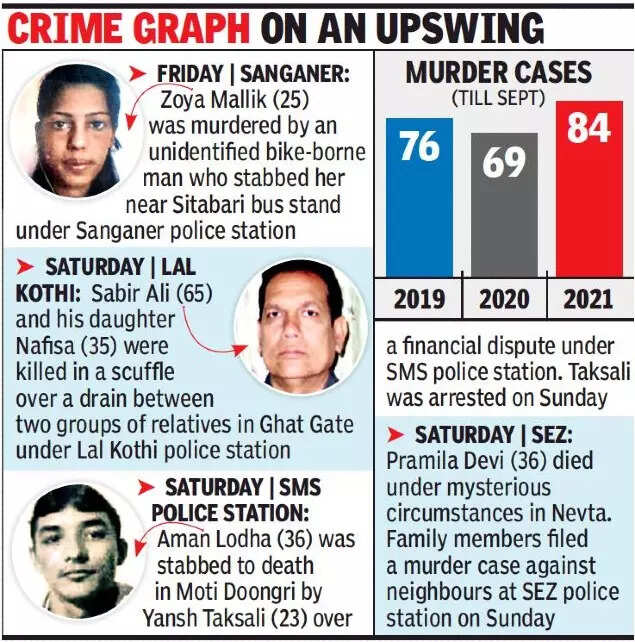 The murders were reported from Lal Kothi, Sanganer, SMS and SEZ police station areas.