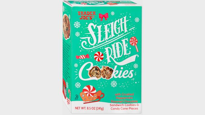 This brand-new, limited-edition item is perfect to bring to a holiday party — or to keep as your own little treat. The Sleigh Ride Cookies are made from a sugar cookie base plus candy cane pieces and broken up Candy Cane Joe-Joe’s.