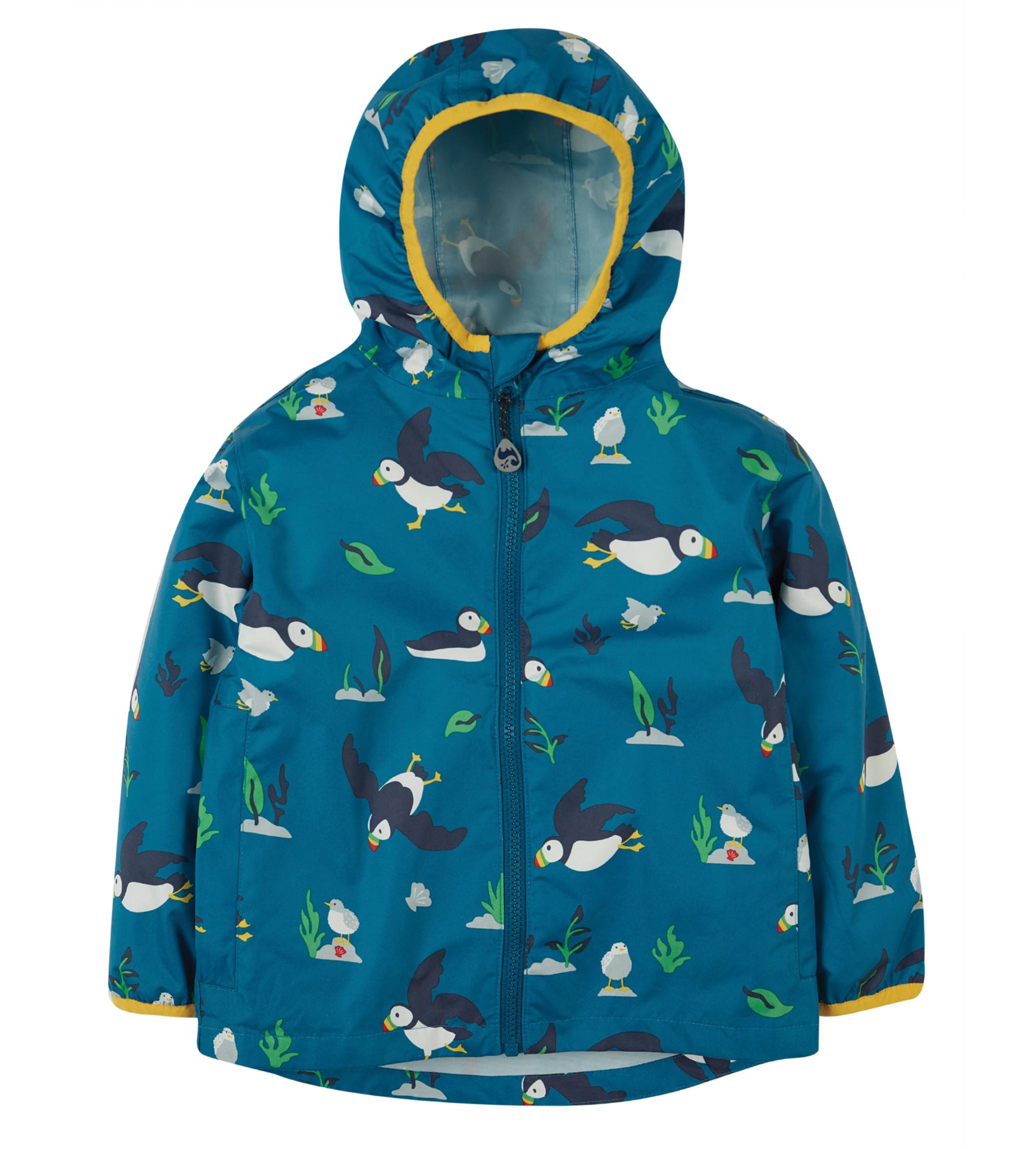 Part of a collaboration with The National Trust, this puffin print jacket is made from 100% recycled polyester and comes with elasticated hood and cuffs, making it extra watertight.