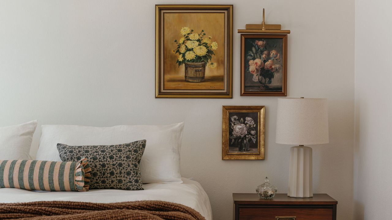 "The mix of sizes and heights makes the wall feel collected and effortless, giving the room warmth without visual weight," adds Lauren. "The goal is for art to feel like part of the bedroom’s rhythm, not something hovering over it."