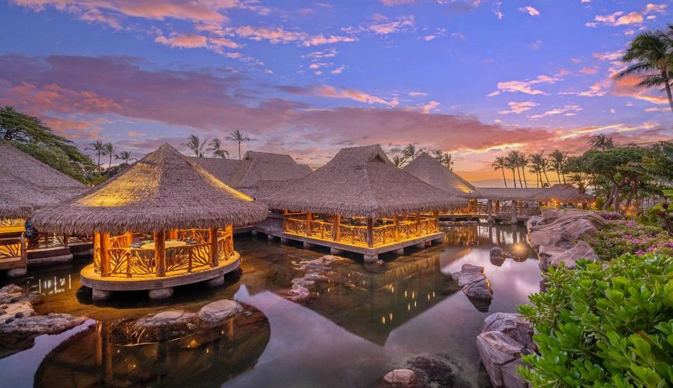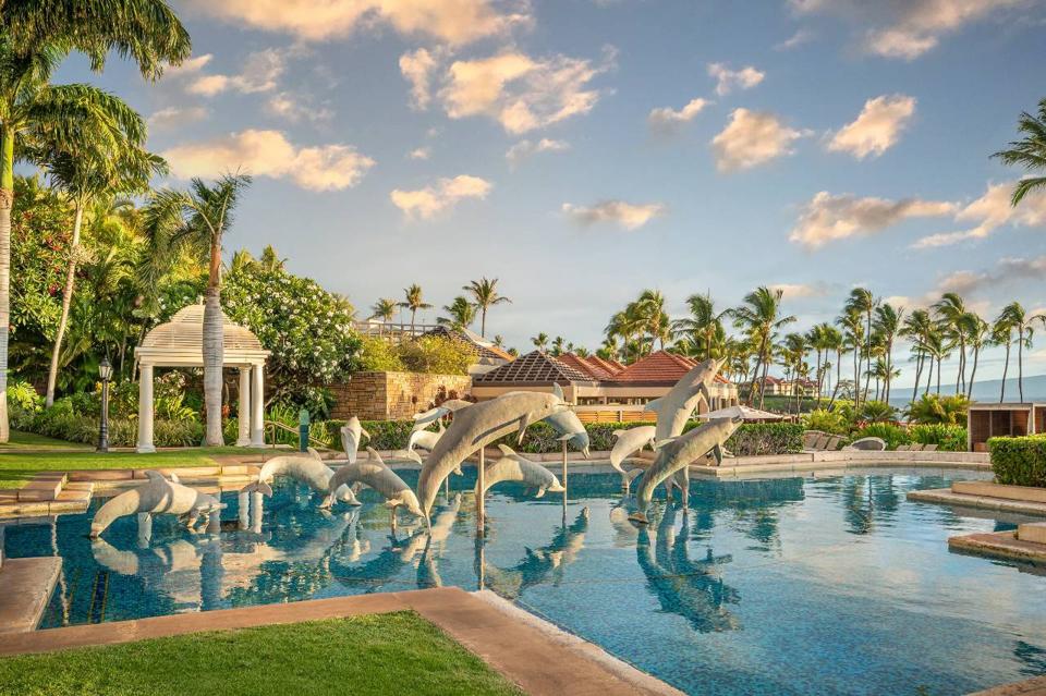 If you're traveling with kids, they will love the lava tube slide. It's a three-story slide that can go up to 22 miles per hour (it takes 14 seconds from start to finish). The popular Wailea Canyon activity pool is 2,000-feet-long, 25,700 square feet and 770,000-gallons of water. The pool area consists of nine individual pools on six different levels, connected by a river that carries swimmers along whitewater rapids and gentle currents. It also has a Tarzan pool with a rope swing, a sand beach, six waterfalls, caves, three Jacuzzis, the world's first water elevator, and a swim-up bar.